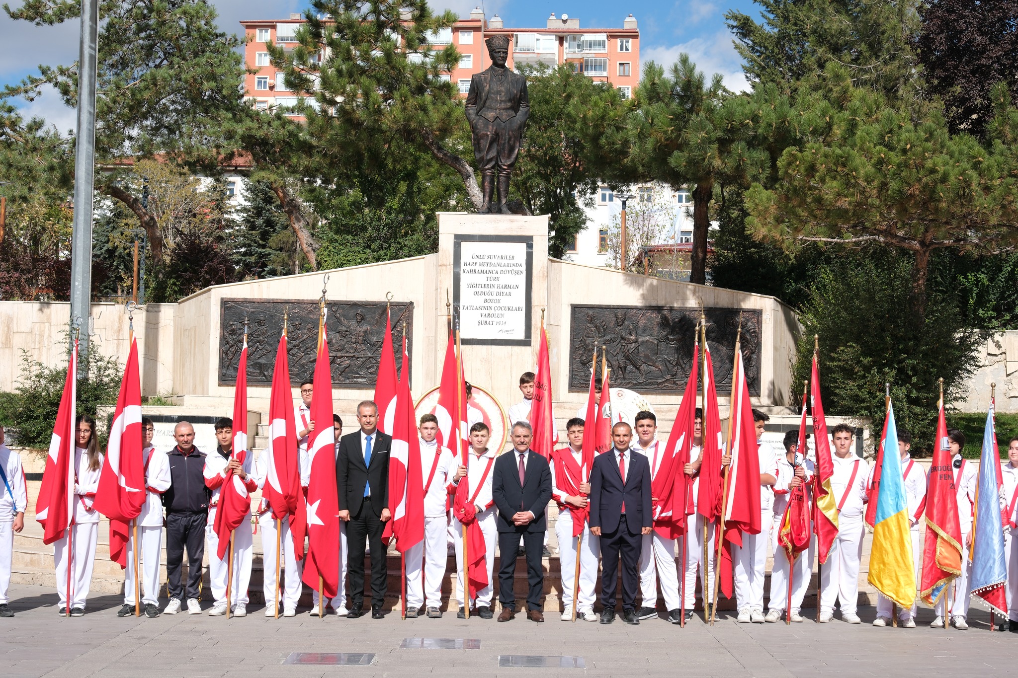 Türkiye Cumhuriyetinin kurucu ulu önder Atatürkün Yozgata gelişinin 101.yıldönümü coşkuyla kutlandı.Yozgat Cumhuriyet alanında Valiliğin hazırladığı proğram kapsamında Atatürk anıtına Valilik ve Belediye çelenklerinin sunumunun ardından Gençlik ve Spor İl Müdürlüğü sporcuları tarafından Vali Mehmet Ali Özkan'a Türk Bayrağı takdim edildi. Törende Mimar Sinan Mesleki ve Teknik Anadolu Lisesi Din Kültürü ve Ahlak Bilgisi öğretmeni Halil İbrahim Yahşi, Gazi Mustafa Kemal Atatürk'ün Yozgat'a hitabını, aynı okulun tarih öğretmeni Yavuz Metin de Yozgat halkının Gazi Mustafa Kemal Atatürk'e cevabını okudu.