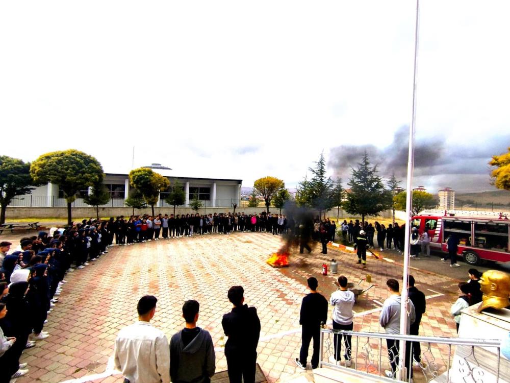 Sorgun ilçesinde ise Gevher Nesibe Mesleki ve Teknik Anadolu Lisesi’nde düzenlenen tatbikatta da yangın eğitimi verildi. Tatbikatta öğrencilere ve öğretmenlere Sorgun Belediyesi İtfaiye Müdürlüğü personelleri uygulamalı eğitim verdi.
