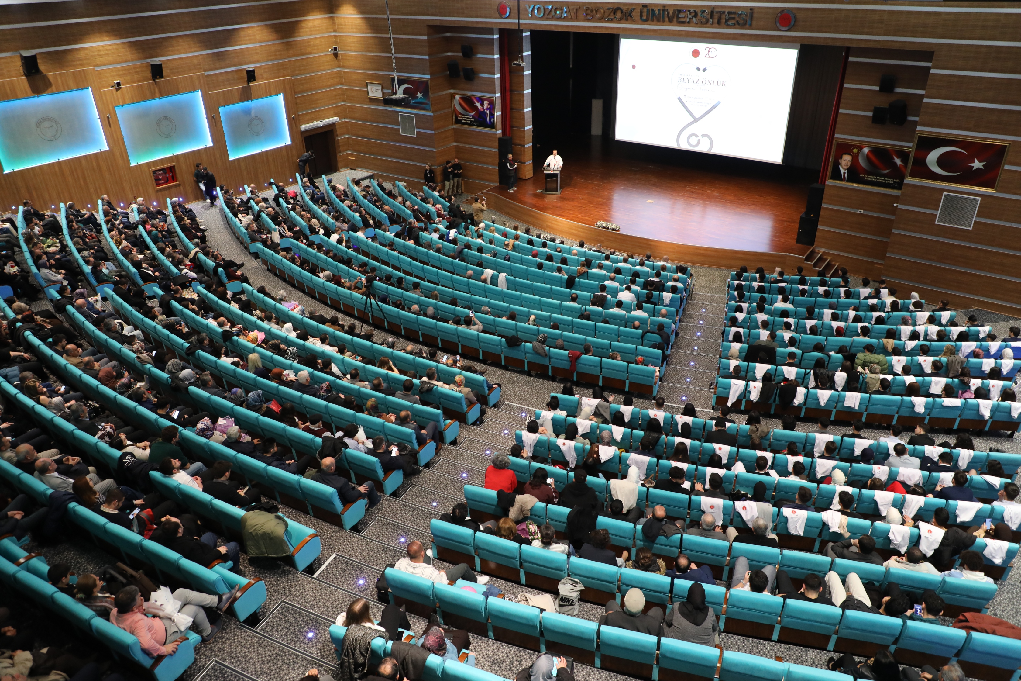 Yozgat Bozok Üniversitesi Tıp Fakültesi, 2025-2026 eğitim-öğretim yılında fakülteye başlayan 136 hekim adayı için “Tıp Bayramı ve Beyaz Önlük Giyme Töreni” düzenledi. Törende, hekimliğe ilk adımlarını atan Tıp Fakültesi birinci sınıf öğrencileri, aileleri önünde mesleki yaşamlarının simgesi olan beyaz önlüklerini giymenin heyecan ve gururunu yaşadı.14 Mart Tıp bayramının da birlikte kutlandığı proğramın son bölümünde ise Suriyeli bir öğrenci velisinin yaptığı dua törene damgasını vurdu. Suriyeli velinin tıp fakültesi öğrencilerinin başarısı için Suriye lisanıyla yaptığı duaya sahnedeki bütün öğrenciler ile töreni salondan izleyen davetliler topluca ‘amin ‘dediler..