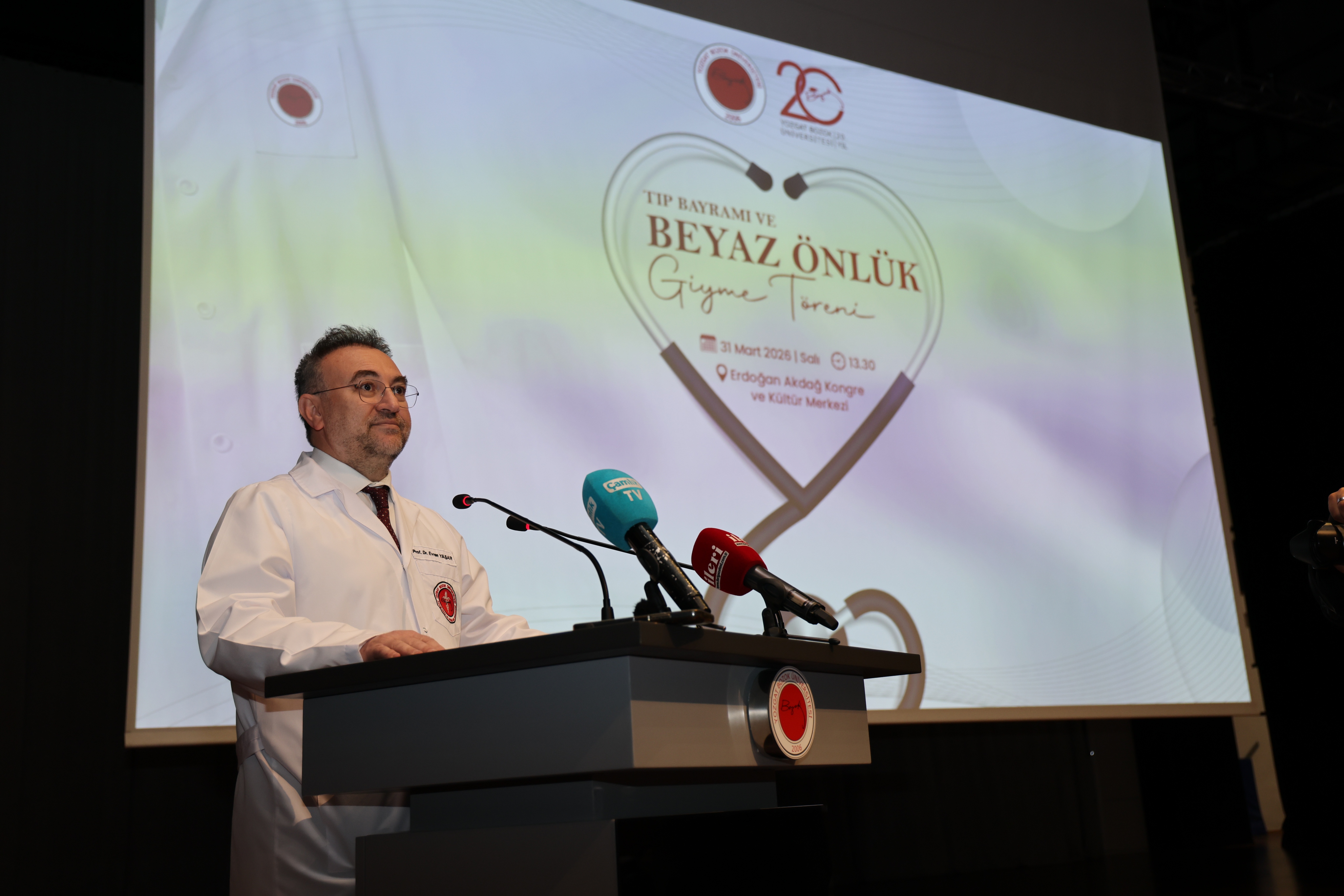 YOBÜ Tıp Fakültesi Dekanı Prof. Dr. Yusuf Hıdır ise hekimliğin sürekli tazelenen bir heyecan ve bitmek bilmeyen bir merak yolculuğu olduğunu ifade ettiği Konuşmasında hekim adaylarına seslenenerek “Bugün giydiğiniz bu beyaz önlükler, hayat yolculuğunuzda size rehberlik etsin. Adımlarınız her zaman doğruya, zihniniz bilime, kalbiniz ise şifaya yönelsin. Sizler bizim gururumuz, bu ülkenin aydınlık geleceğisiniz. Hepinizin yolu açık, beyazı her daim parlak olsun. 14 Mart Tıp Bayramımız kutlu olsun.” dedi.